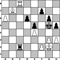 game notation in PGN-format [Event "Die Wikinger XXI. - Qualifikation"] [Site "www.myChess.de"] [Date "2025.08.08"] [Round "1"] [White "Oste152V4"] [Black "Seneca"] [ECO "A04"] [WhitemyELO "1753"] [BlackmyELO "1528"] [Result "1/2-1/2"] [TimeControl "10/2592000"] [WhiteDays "29"] [BlackDays "30"] [MyChessNo "133579"] 1. Nf3 d6 2. c4 Nf6 3. Nc3 e6 4. g3 Be7 5. Bg2 O-O 6. O-O c5 7. b3 a6 8. Bb2 Nc6 9. Qc2 g6 10. Rad1 Rb8 11. d4 cxd4 12. Nxd4 Nb4 13. Qb1 Bd7 14. e4 e5 15. Nde2 a5 16. a3 Na6 17. Nd5 Nxd5 18. Rxd5 Nc5 19. Qc2 b5 20. cxb5 Bxb5 21. Rfd1 Bxe2 22. Qxe2 Rxb3 23. Rxc5 Qb6 24. Rc2 Rb8 25. Bc1 a4 26. Qc4 Qb5 27. Qxb5 R8xb5 28. Bf1 Rb6 29. Bh6 Rb8 30. Rdc1 Rd8 31. Rc8 Rb8 32. Rxd8+ Rxd8 33. Rc7 Bf8 34. Bxf8 Kxf8 35. Ra7 h5 36. Rxa4 Rb8 37. Bc4 Rb7 38. Bd5 Rd7 39. Ra8+ Kg7 40. a4 Rc7 41. a5 Kf6 42. a6 Kg5 43. Bb7 Kg4 44. Kg2 Rc2 45. h3+ Kg5 46. Rc8 1/2-1/2 position notation in FEN-format 2R5/1B3p2/P2p2p1/4p1kp/4P3/6PP/2r2PK1/8 - - - 2 46 Captured white pieces: Captured black pieces: Click on a captured piece in order to display the desired move!
