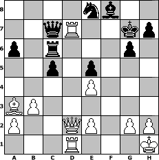 game notation in PGN-format [Event "2. Norderstedter DENK MAL Open 2011"] [Site "www.myChess.de"] [Date "2011.06.02"] [Round "1"] [White "Joschi"] [Black "beowulf"] [ECO "B32"] [WhitemyELO "1531"] [BlackmyELO "1431"] [Result "1-0"] [TimeControl "10/2592000"] [WhiteDays "29"] [BlackDays "30"] [MyChessNo "74314"] 1. e4 c5 2. Nf3 Nc6 3. d4 cxd4 4. Nxd4 d6 5. Bb5 g6 6. Nxc6 bxc6 7. Bxc6+ Bd7 8. Bxa8 Qxa8 9. f3 Nf6 10. O-O Bg7 11. Be3 O-O 12. c3 Qb7 13. Qc2 Rb8 14. b3 Bb5 15. Re1 Rc8 16. Na3 Ba6 17. Rac1 Nd7 18. c4 e5 19. Nb1 Qc7 20. Nc3 Nc5 21. Nd5 Qd7 22. Red1 Bb7 23. Bg5 Bxd5 24. Rxd5 Ne6 25. Be3 Bf8 26. Rcd1 Nc7 27. R5d3 a6 28. Bc5 Ne8 29. Ba3 Rc6 30. Rd5 Nf6 31. R5d3 Qc7 32. Qd2 Ne8 33. Kh1 Kg7 34. f4 f6 35. fxe5 fxe5 36. c5 dxc5 37. Rd7+ 1-0 position notation in FEN-format 4nb2/2qR2kp/p1r3p1/2p1p3/4P3/BP6/P2QP1PP/3R3K - - - 1 37 Captured white pieces: ![]() ![]() ![]() ![]() ![]() ![]() ![]() ![]() ![]() ![]() ![]() ![]() ![]() ![]() ![]() Captured black pieces: ![]() ![]() ![]() ![]() ![]() ![]() ![]() ![]() ![]() ![]() ![]() ![]() ![]() ![]() ![]() Click on a captured piece in order to display the desired move!