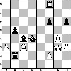 game notation in PGN-format [Event "2.HSF-Clubmeisterschaften 2011/12 Gruppe B"] [Site "www.myChess.de"] [Date "2011.09.01"] [Round "1"] [White "lasker"] [Black "Gauss1233"] [ECO "E61"] [WhitemyELO "1208"] [BlackmyELO "1414"] [Result "0-1"] [TimeControl "10/2592000"] [WhiteDays "00"] [BlackDays "23"] [MyChessNo "75989"] 1. d4 Nf6 2. c4 g6 3. Nc3 Bg7 4. Nf3 O-O 5. e3 d6 6. Be2 Nbd7 7. O-O c5 8. d5 Nb6 9. Re1 Nfd7 10. a3 e6 11. Qc2 exd5 12. cxd5 Bxc3 13. bxc3 Nxd5 14. Bd3 N7f6 15. c4 Nc7 16. h3 a6 17. Bb2 b5 18. cxb5 axb5 19. Qc3 Kg7 20. Nd2 Ncd5 21. Qc2 c4 22. Be4 Bb7 23. Bxd5 Bxd5 24. Qc3 Re8 25. g4 g5 26. e4 Be6 27. e5 dxe5 28. Rxe5 Rb8 29. Rxg5+ Kf8 30. Qxf6 Qxf6 31. Bxf6 Rbc8 32. Bg7+ Ke7 33. Ne4 c3 34. Bf6+ Kd7 35. Rd1+ Kc6 36. Rc5+ Kb6 37. Rd6+ Ka5 38. Rxc3 Rc4 39. Bd8+ Rxd8 40. Rxd8 Rxe4 41. Ra8+ Kb6 42. Rd8 Bc4 43. Rd2 Re6 44. Kg2 f6 45. Rb2 Kc5 46. Kg3 h6 47. Rd2 Re5 48. Rd8 Re2 49. Rc8+ Kd4 50. Rc1 Ra2 51. Rd8+ Kc5 52. Rc3 Rb2 53. Rf8 Kd4 0-1 position notation in FEN-format 5R2/8/5p1p/1p6/2bk2P1/P1R3KP/1r3P2/8 - - - 14 54 Captured white pieces: ![]() ![]() ![]() ![]() ![]() ![]() ![]() ![]() ![]() ![]() ![]() ![]() ![]() ![]() ![]() Captured black pieces: ![]() ![]() ![]() ![]() ![]() ![]() ![]() ![]() ![]() ![]() ![]() ![]() ![]() ![]() ![]() Click on a captured piece in order to display the desired move!