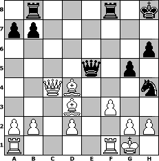 game notation in PGN-format [Event "Wrixum - Open die VII"] [Site "www.myChess.de"] [Date "2010.06.05"] [Round "1"] [White "kalle"] [Black "werderfan"] [ECO "D35"] [WhitemyELO "1695"] [BlackmyELO "1560"] [Result "1-0"] [TimeControl "10/2592000"] [WhiteDays "28"] [BlackDays "30"] [MyChessNo "66091"] 1. d4 d5 2. c4 e6 3. Nc3 Nf6 4. cxd5 exd5 5. Bg5 Be7 6. e3 O-O 7. Bd3 h6 8. Bh4 Bg4 9. f3 Bh5 10. Qc2 Nbd7 11. Nge2 c6 12. Nf4 g5 13. Nxh5 Nxh5 14. Bf2 f5 15. Bxf5 Ng7 16. Bd3 c5 17. O-O c4 18. Bh7+ Kh8 19. Nxd5 Bd6 20. Be4 Rb8 21. Qxc4 Nf6 22. Nxf6 Qxf6 23. Bd3 Nf5 24. e4 Nh4 25. e5 Bxe5 26. dxe5 Qxe5 27. Bd4 1-0 position notation in FEN-format 1r3r1k/pp6/7p/4q1p1/2QB3n/3B1P2/PP1P2PP/R4RK1 - - - 1 27 Captured white pieces: Captured black pieces: Click on a captured piece in order to display the desired move!