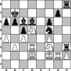 game notation in PGN-format [Event "Entdeckung der Langsamkeit"] [Site "www.myChess.de"] [Date "2009.08.15"] [Round "1"] [White "Vahl1"] [Black "Helmut48"] [ECO "A03"] [WhitemyELO "1732"] [BlackmyELO "1804"] [Result "1/2-1/2"] [TimeControl "10/3456000"] [WhiteDays "199"] [BlackDays "200"] [MyChessNo "58382"] 1. f4 d5 2. g3 h5 3. Nf3 h4 4. Nxh4 e5 5. Nf3 exf4 6. gxf4 Bg4 7. Ng5 f6 8. Nf3 Nc6 9. e3 Qd7 10. Be2 O-O-O 11. Nc3 Nge7 12. d3 Bh3 13. Rg1 d4 14. Ne4 Nf5 15. exd4 Ncxd4 16. c3 Nxe2 17. Qxe2 c5 18. b3 Qxd3 19. Qxd3 Rxd3 20. Ke2 Rd8 21. Kf2 Kc7 22. Bb2 b6 23. Rae1 Kb7 24. c4 Bd6 25. Bc1 Bc7 26. Nc3 Rd7 27. Nd5 Bd8 28. a4 Nd6 29. Re2 Bf5 30. Kg2 Be4 31. Nc3 Bc6 32. Rd2 Bc7 33. Nd5 Nf5 34. Kf2 Bd6 35. Rgd1 Rdd8 36. Rd3 Rh3 37. Rg1 Re8 38. Kg2 Reh8 39. Kf2 Bb8 40. Be3 Bd6 41. Bd2 a6 42. Bc1 Ka7 43. Rg2 Kb7 44. Bd2 1/2-1/2 position notation in FEN-format 7r/1k4p1/ppbb1p2/2pN1n2/P1P2P2/1P1R1N1r/3B1KRP/8 - - - 5 44 Captured white pieces: Captured black pieces: Click on a captured piece in order to display the desired move!