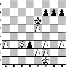 game notation in PGN-format [Event "Zwischendurch mal ein paar eigene Z"] [Site "www.myChess.de"] [Date "2008.04.30"] [Round "1"] [White "thw"] [Black "Knight"] [ECO "C68"] [WhitemyELO "1546"] [BlackmyELO "1228"] [Result "1-0"] [TimeControl "10/1728000"] [WhiteDays "20"] [BlackDays "20"] [MyChessNo "44668"] 1. e4 e5 2. Nf3 Nc6 3. Bb5 a6 4. Bxc6 dxc6 5. O-O Bg4 6. h3 Bh5 7. Re1 Bd6 8. c3 b5 9. d4 exd4 10. cxd4 Bb4 11. Nc3 Ne7 12. Qd3 c5 13. d5 c4 14. Qe3 O-O 15. a3 Bxc3 16. Qxc3 c6 17. dxc6 Nxc6 18. b3 Bxf3 19. Qxf3 Nd4 20. Qg3 Qf6 21. Bb2 Rfd8 22. bxc4 bxc4 23. Qe3 Rab8 24. e5 Nf3+ 25. gxf3 Qb6 26. Qxb6 Rxb6 27. Bc3 Rb3 28. Re3 Rd3 29. Rxd3 cxd3 30. Bb4 a5 31. Bxa5 Kf8 32. Bb4+ Ke8 33. Kf1 Kd7 34. Rc1 Ke6 35. Rc3 Rxc3 36. Bxc3 1-0 position notation in FEN-format 8/5ppp/4k3/4P3/8/P1Bp1P1P/4PP2/5K2 - - - 0 36 Captured white pieces: Captured black pieces: Click on a captured piece in order to display the desired move!