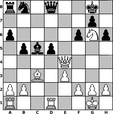game notation in PGN-format [Event "Wer schnell zieht,ist schneller fertig!"] [Site "www.myChess.de"] [Date "2015.10.08"] [Round "1"] [White "Naunhofer"] [Black "reisinger"] [ECO "D06"] [WhitemyELO "1565"] [BlackmyELO "1448"] [Result "1-0"] [TimeControl "10/1728000"] [WhiteDays "20"] [BlackDays "20"] [MyChessNo "100731"] 1. d4 d5 2. c4 Nf6 3. Nf3 e6 4. Bg5 Be7 5. Nc3 h6 6. Bd2 a6 7. e3 dxc4 8. Bxc4 b5 9. Be2 Bb7 10. O-O O-O 11. Ne5 c5 12. Bf3 Bxf3 13. Qxf3 Nd5 14. Nxd5 exd5 15. dxc5 Bxc5 16. Rfd1 f6 17. Ng6 Re8 18. Bc3 Re4 19. Qxe4 1-0 position notation in FEN-format rn1q2k1/6p1/p4pNp/1pbp4/4Q3/2B1P3/PP3PPP/R2R2K1 - - - 0 19 Captured white pieces: Captured black pieces: Click on a captured piece in order to display the desired move!