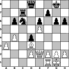 game notation in PGN-format [Event "Die Weinlese 2014 m. 50.00 Eu 1.Preis"] [Site "www.myChess.de"] [Date "2014.09.15"] [Round "1"] [White "deepsabel"] [Black "Helangel"] [ECO "D58"] [WhitemyELO "2054"] [BlackmyELO "1905"] [Result "1/2-1/2"] [TimeControl "10/2592000"] [WhiteDays "27"] [BlackDays "08"] [MyChessNo "95915"] 1. d4 d5 2. c4 e6 3. Nc3 Nf6 4. Bg5 Be7 5. e3 O-O 6. Nf3 h6 7. Bh4 b6 8. Bd3 Nbd7 9. O-O Bb7 10. Qe2 c5 11. Rac1 a6 12. cxd5 Nxd5 13. Bxe7 Qxe7 14. Nxd5 Bxd5 15. e4 Bb7 16. b4 cxd4 17. Rc7 Rab8 18. Ne5 Rfd8 19. Rxb7 Rxb7 20. Nc6 Qf8 21. Bxa6 Rc7 22. Nxd8 Qxd8 23. e5 Nb8 24. Bd3 Nc6 25. a3 g6 1/2-1/2 position notation in FEN-format 3q2k1/2r2p2/1pn1p1pp/4P3/1P1p4/P2B4/3PQPPP/5RK1 - - - 0 26 Captured white pieces: Captured black pieces: Click on a captured piece in order to display the desired move!