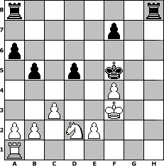 game notation in PGN-format [Event "unter uns Nr. 5"] [Site "www.myChess.de"] [Date "2012.10.15"] [Round "1"] [White "rux"] [Black "Ziegert"] [ECO "C89"] [WhitemyELO "1522"] [BlackmyELO "1465"] [Result "0-1"] [TimeControl "10/864000"] [WhiteDays "10"] [BlackDays "03"] [MyChessNo "84465"] 1. e4 e5 2. Nf3 Nc6 3. Bb5 a6 4. Ba4 Nf6 5. O-O Be7 6. Re1 b5 7. Bb3 O-O 8. c3 d5 9. exd5 Nxd5 10. Nxe5 Nxe5 11. Rxe5 c6 12. Bxd5 cxd5 13. Qf3 Be6 14. d4 Bd6 15. Bg5 Qd7 16. Qg3 Bxe5 17. dxe5 Rfc8 18. Bf6 Bg4 19. Bxg7 Kxg7 20. h3 h5 21. hxg4 Qxg4 22. Qxg4+ hxg4 23. f4 gxf3 24. gxf3 Kg6 25. Nd2 Kf5 26. Kf2 Kxe5 27. Ke3 Re8 28. f4+ Kf5+ 29. Kf3 Rh8 0-1 position notation in FEN-format r6r/5p2/p7/1p1p1k2/5P2/2P2K2/PP1NP3/R7 - - - 3 30 Captured white pieces: ![]() ![]() ![]() ![]() ![]() ![]() ![]() ![]() ![]() ![]() ![]() ![]() ![]() ![]() ![]() Captured black pieces: ![]() ![]() ![]() ![]() ![]() ![]() ![]() ![]() ![]() ![]() ![]() ![]() ![]() ![]() ![]() Click on a captured piece in order to display the desired move!
