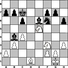 game notation in PGN-format [Event "Auf ein Neues Jahr"] [Site "www.myChess.de"] [Date "2005.12.20"] [Round "1"] [White "Seneca"] [Black "bopl"] [ECO "A42"] [WhitemyELO "1687"] [BlackmyELO "1900"] [Result "1/2-1/2"] [TimeControl "10/2592000"] [WhiteDays "30"] [BlackDays "30"] [MyChessNo "20907"] 1. d4 d6 2. c4 e5 3. dxe5 dxe5 4. Qxd8+ Kxd8 5. e4 c6 6. Nf3 Nd7 7. Be2 Ngf6 8. Bd3 Nc5 9. Bc2 Ncxe4 10. Nxe5 Bb4+ 11. Bd2 Nxd2 12. Nxd2 Be6 13. Rd1 Kc7 14. O-O Rad8 15. Ndf3 Bd6 16. b3 h6 17. h3 Rhe8 18. Rfe1 Bb4 19. Rxd8 Rxd8 20. Rd1 Rxd1+ 21. Bxd1 1/2-1/2 position notation in FEN-format 8/ppk2pp1/2p1bn1p/4N3/1bP5/1P3N1P/P4PP1/3B2K1 - - - 0 21 Captured white pieces: Captured black pieces: Click on a captured piece in order to display the desired move!