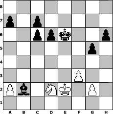 game notation in PGN-format [Event ""Gewinne mit Schottisch""] [Site "www.myChess.de"] [Date "2010.07.11"] [Round "1"] [White "sprinterde"] [Black "espero"] [ECO "C21"] [WhitemyELO "1631"] [BlackmyELO "1652"] [Result "0-1"] [TimeControl "10/1728000"] [WhiteDays "20"] [BlackDays "19"] [MyChessNo "66886"] 1. e4 e5 2. d4 exd4 3. Nf3 Nc6 4. Bb5 Bc5 5. Bg5 f6 6. Bf4 Nge7 7. O-O O-O 8. c3 dxc3 9. Nxc3 d6 10. Nd5 Bg4 11. Bxc6 bxc6 12. Nxe7+ Qxe7 13. Qd3 Rfe8 14. h3 Qxe4 15. Qxe4 Rxe4 16. hxg4 Rxf4 17. g5 Re8 18. gxf6 Rxf6 19. Rfe1 Rfe6 20. Kf1 h6 21. Rxe6 Rxe6 22. Re1 Kf7 23. Rxe6 Kxe6 24. Ke2 g5 25. Nd2 Bd4 26. f3 Bxb2 0-1 position notation in FEN-format 8/p1p5/2ppk2p/6p1/8/5P2/Pb1NK1P1/8 - - - 0 27 Captured white pieces: Captured black pieces: Click on a captured piece in order to display the desired move!