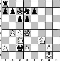game notation in PGN-format [Event "Neujahrs Spa"] [Site "www.myChess.de"] [Date "2010.12.01"] [Round "2"] [White "espero"] [Black "woern63"] [ECO "A84"] [WhitemyELO "1619"] [BlackmyELO "1766"] [Result "0-1"] [TimeControl "10/2592000"] [WhiteDays "87"] [BlackDays "88"] [MyChessNo "70244"] 1. d4 f5 2. c4 g6 3. Nc3 Nh6 4. e4 fxe4 5. f3 exf3 6. Nxf3 Bg7 7. h4 d6 8. h5 Bg4 9. hxg6 hxg6 10. Bxh6 Rxh6 11. Rxh6 Bxh6 12. Bd3 Qd7 13. Bxg6+ Kd8 14. Qd3 c6 15. Kf2 Bg7 16. Rh1 Kc7 17. Rh7 Bf6 18. Qe3 Bf5 19. Bxf5 Qxf5 20. Qe4 Bxd4+ 21. Qxd4 Qxh7 22. b4 Qc2+ 23. Kg1 Nd7 0-1 position notation in FEN-format r7/ppknp3/2pp4/8/1PPQ4/2N2N2/P1qP2P1/6K1 - - - 3 24 Captured white pieces: Captured black pieces: Click on a captured piece in order to display the desired move!