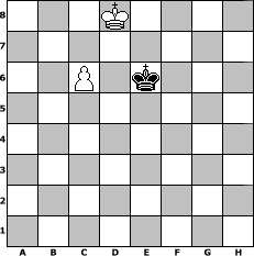 game notation in PGN-format [Event "Für die kalten Tage..."] [Site "www.myChess.de"] [Date "2018.02.09"] [Round "2"] [White "Rotstift10"] [Black "martinus"] [ECO "B30"] [WhitemyELO "1579"] [BlackmyELO "1712"] [Result "1-0"] [TimeControl "10/1728000"] [WhiteDays "20"] [BlackDays "20"] [MyChessNo "111365"] 1. e4 c5 2. Nf3 Nc6 3. Bc4 e6 4. Nc3 Nf6 5. d4 cxd4 6. Nxd4 Ne5 7. Qe2 Bb4 8. Bg5 Qc7 9. Ndb5 Bxc3+ 10. bxc3 Qxc4 11. Qxc4 Nxc4 12. Nc7+ Kd8 13. Nxa8 b6 14. e5 Nxe5 15. Bf4 d6 16. O-O-O Nd5 17. Bxe5 dxe5 18. c4 Bb7 19. Nxb6 axb6 20. cxd5 exd5 21. f3 Ke7 22. Rd3 Rc8 23. Rb3 Rc6 24. Kd2 Ba6 25. Re1 f6 26. Reb1 Bc4 27. Rxb6 Rxb6 28. Rxb6 Bxa2 29. Rb7+ Kf8 30. Ke3 Kg8 31. f4 e4 32. Kd4 h5 33. h4 Kh7 34. g3 Kg6 35. f5+ Kxf5 36. Rxg7 Bc4 37. c3 Bb3 38. Ke3 Ke5 39. g4 hxg4 40. Rxg4 f5 41. Rf4 Bd1 42. Rf2 Bg4 43. Rf4 Bf3 44. Rxf3 exf3 45. Kxf3 f4 46. h5 Kf5 47. h6 Kg6 48. Kxf4 Kxh6 49. Ke5 Kg6 50. Kxd5 Kf7 51. Kd6 Ke8 52. Kc7 Ke7 53. c4 Ke6 54. c5 Kd5 55. c6 Ke6 56. Kd8 1-0 position notation in FEN-format 3K4/8/2P1k3/8/8/8/8/8 - - - 2 56 Captured white pieces: Captured black pieces: Click on a captured piece in order to display the desired move!