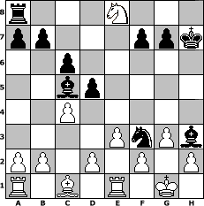 game notation in PGN-format [Event "4. Windeck Open"] [Site "www.myChess.de"] [Date "2011.06.29"] [Round "1"] [White "werderfan"] [Black "Tomino"] [ECO "A52"] [WhitemyELO "1526"] [BlackmyELO "1755"] [Result "0-1"] [TimeControl "10/864000"] [WhiteDays "20"] [BlackDays "18"] [MyChessNo "74827"] 1. d4 Nf6 2. c4 e5 3. dxe5 Ng4 4. Nf3 Bc5 5. e3 Nc6 6. Be2 O-O 7. O-O Ngxe5 8. Nc3 Nxf3+ 9. Bxf3 Ne5 10. Be4 Re8 11. Qc2 Qh4 12. g3 Qh5 13. Nd5 c6 14. Nc7 d5 15. Bxh7+ Qxh7 16. Qxh7+ Kxh7 17. Nxe8 Bh3 18. Re1 Nf3+ 0-1 position notation in FEN-format r3N3/pp3ppk/2p5/2bp4/2P5/4PnPb/PP1P1P1P/R1B1R1K1 - - - 3 19 Captured white pieces: Captured black pieces: Click on a captured piece in order to display the desired move!