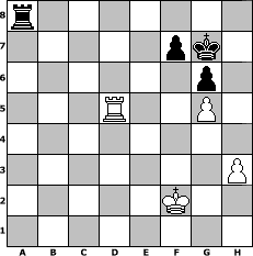 game notation in PGN-format [Event "Mammut"] [Site "www.myChess.de"] [Date "2010.07.01"] [Round "2"] [White "neve"] [Black "espero"] [ECO "A74"] [WhitemyELO "1538"] [BlackmyELO "1677"] [Result "1/2-1/2"] [TimeControl "10/2592000"] [WhiteDays "148"] [BlackDays "146"] [MyChessNo "66706"] 1. d4 Nf6 2. c4 c5 3. d5 e6 4. Nc3 exd5 5. cxd5 d6 6. e4 g6 7. Nf3 Bg7 8. Be2 O-O 9. O-O a6 10. a4 Re8 11. Bd3 Bg4 12. h3 Bxf3 13. Qxf3 Nbd7 14. Bf4 Ne5 15. Bxe5 Rxe5 16. Qd1 c4 17. Bxc4 Nxe4 18. Rc1 Qh4 19. Nxe4 Rxe4 20. Qb3 b5 21. axb5 axb5 22. Qxb5 Bxb2 23. g3 Qf6 24. Rc2 Bd4 25. Bd3 Re7 26. Qb4 Bc5 27. Qc3 Qf3 28. Bc4 Qf5 29. Kg2 Ra3 30. Qd2 Re4 31. Bd3 Qxd5 32. Bxe4 Qxe4+ 33. Kh2 h5 34. Re1 Qf5 35. Qh6 Ra8 36. Rce2 Rf8 37. f4 d5 38. Qg5 Qxg5 39. fxg5 Kg7 40. Re5 h4 41. Rxd5 Bf2 42. Rf1 hxg3+ 43. Kg2 Ra8 44. Rxf2 gxf2 45. Kxf2 1/2-1/2 position notation in FEN-format r7/5pk1/6p1/3R2P1/8/7P/5K2/8 - - - 0 45 Captured white pieces: Captured black pieces: Click on a captured piece in order to display the desired move!