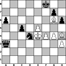 game notation in PGN-format [Event "6. Wikinger-Meisterschaft Vorrunde B"] [Site "www.myChess.de"] [Date "2010.04.10"] [Round "1"] [White "Ziegert"] [Black "73DADDELDU37"] [ECO "A02"] [WhitemyELO "1509"] [BlackmyELO "1394"] [Result "0-1"] [TimeControl "10/2592000"] [WhiteDays "30"] [BlackDays "20"] [MyChessNo "64742"] 1. f4 e6 2. e4 Bc5 3. Nf3 Nc6 4. d4 Bb6 5. Be3 Nf6 6. Nc3 Ba5 7. Bd3 a6 8. O-O Ng4 9. Bd2 Bxc3 10. Bxc3 Ne3 11. Qd2 Nxf1 12. Rxf1 O-O 13. e5 d5 14. Qf2 Qe7 15. Qg3 h6 16. Bd2 Kh8 17. c3 f5 18. Nh4 Qf7 19. Ng6+ Kg8 20. Nxf8 Kxf8 21. Be3 Bd7 22. a3 b5 23. b3 Na5 24. Bc2 c6 25. Qe1 Qe7 26. Bc1 Nb7 27. Qe2 Be8 28. c4 bxc4 29. bxc4 dxc4 30. Qxc4 c5 31. d5 exd5 32. Qxd5 Rd8 33. Qc4 Bb5 34. Qc3 Bxf1 35. Kxf1 Qh4 36. h3 Rd4 37. Qf3 Nd8 38. Bxf5 Qe7 39. Bb2 Rd2 40. Bc3 Ra2 41. Be1 Qf7 42. Qd3 Nc6 43. Bh4 Ra1+ 44. Kf2 Nd4 45. g4 Qa2+ 46. Ke3 Qxa3 47. Bg6 Qc1+ 48. Ke4 Ra3 49. Qxa3 Qxa3 0-1 position notation in FEN-format 5k2/6p1/p5Bp/2p1P3/3nKPPB/q6P/8/8 - - - 0 50 Captured white pieces: Captured black pieces: Click on a captured piece in order to display the desired move!