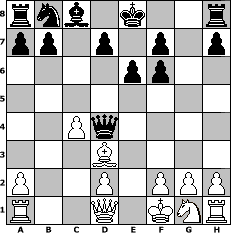 game notation in PGN-format [Event "Der HSF feiert Geburtstag-feiert gerne dabei mit!"] [Site "www.myChess.de"] [Date "2012.05.01"] [Round "1"] [White "Steffi"] [Black "Helmut48"] [ECO "E30"] [WhitemyELO "1583"] [BlackmyELO "1921"] [Result "0-1"] [TimeControl "10/2592000"] [WhiteDays "30"] [BlackDays "30"] [MyChessNo "81532"] 1. d4 Nf6 2. c4 e6 3. Nc3 Bb4 4. Bg5 c5 5. e3 Qa5 6. Bd3 cxd4 7. Bxf6 gxf6 8. exd4 Bxc3+ 9. bxc3 Qxc3+ 10. Kf1 Qxd4 0-1 position notation in FEN-format rnb1k2r/pp1p1p1p/4pp2/8/2Pq4/3B4/P2P1PPP/R2Q1KNR - kq - 0 11 Captured white pieces: Captured black pieces: Click on a captured piece in order to display the desired move!