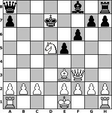 game notation in PGN-format [Event "4. Norderstedter DENK MAL Open 2013"] [Site "www.myChess.de"] [Date "2013.01.09"] [Round "1"] [White "UPS"] [Black "Steppenwolf"] [ECO "C44"] [WhitemyELO "1714"] [BlackmyELO "1178"] [Result "1-0"] [TimeControl "10/2592000"] [WhiteDays "26"] [BlackDays "30"] [MyChessNo "86034"] 1. e4 e5 2. Nf3 Nc6 3. d4 d6 4. Bb5 Bg4 5. d5 Nf6 6. dxc6 Bxf3 7. cxb7+ Nd7 8. bxa8=Q Qxa8 9. Bxd7+ Kxd7 10. Qxf3 f6 11. Nc3 c6 12. Be3 d5 13. exd5 cxd5 14. Nxd5 1-0 position notation in FEN-format q4b1r/p2k2pp/5p2/3Np3/8/4BQ2/PPP1PPPP/R3K2R - KQ - 0 14 Captured white pieces: Captured black pieces: Click on a captured piece in order to display the desired move!