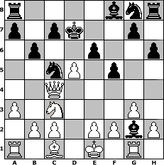 game notation in PGN-format [Event "Schachkreis #2"] [Site "www.myChess.de"] [Date "2018.07.05"] [Round "1"] [White "tiano"] [Black "reisinger"] [ECO "A10"] [WhitemyELO "1561"] [BlackmyELO "1485"] [Result "1-0"] [TimeControl "10/2592000"] [WhiteDays "30"] [BlackDays "30"] [MyChessNo "112504"] 1. c4 f5 2. d4 e6 3. g3 b6 4. Bg2 d5 5. Nf3 Bb7 6. Qd3 h6 7. Nc3 Na6 8. a3 dxc4 9. Qxc4 Qd7 10. Ne5 Bxg2 11. Nxd7 Kxd7 12. d5 Nc5 13. Rg1 1-0 position notation in FEN-format r4bnr/p1pk2p1/1p2p2p/2nP1p2/2Q5/P1N3P1/1PP1PPbP/R1B1K1R1 - Q - 2 13 Captured white pieces: ![]() ![]() ![]() ![]() ![]() ![]() ![]() ![]() ![]() ![]() ![]() ![]() ![]() ![]() ![]() Captured black pieces: ![]() ![]() ![]() ![]() ![]() ![]() ![]() ![]() ![]() ![]() ![]() ![]() ![]() ![]() ![]() Click on a captured piece in order to display the desired move!