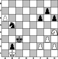 game notation in PGN-format [Event "Wrixum - Open die XI"] [Site "www.myChess.de"] [Date "2013.08.09"] [Round "1"] [White "FrankB"] [Black "reisinger"] [ECO "A06"] [WhitemyELO "1654"] [BlackmyELO "1494"] [Result "0-1"] [TimeControl "10/2592000"] [WhiteDays "30"] [BlackDays "30"] [MyChessNo "89636"] 1. Nf3 d5 2. d4 e6 3. a3 c5 4. c4 Nf6 5. e3 Nc6 6. Nc3 a6 7. dxc5 Bxc5 8. cxd5 exd5 9. b4 Ba7 10. Bb2 O-O 11. Be2 Re8 12. O-O d4 13. Nxd4 Nxd4 14. exd4 Bxd4 15. Rc1 Bf5 16. Bf3 Ra7 17. Na4 Bxb2 18. Nxb2 b5 19. Qxd8 Rxd8 20. Rfd1 Rxd1+ 21. Rxd1 h6 22. Rd8+ Kh7 23. Ra8 Rxa8 24. Bxa8 Be4 25. Bxe4+ Nxe4 26. Nd3 Nc3 27. Nc5 Nb1 28. a4 Nc3 29. a5 Nd5 30. Nxa6 Kg6 31. Kf1 Kf5 32. Ke2 Ke4 33. Nc5+ Kd4 34. g3 Nxb4 35. a6 Nc6 36. Nd3 Kc3 37. Ne5 Na7 38. Kd1 f6 39. Nf3 b4 40. Kc1 b3 41. Nh4 b2+ 42. Kb1 Nb5 0-1 position notation in FEN-format 8/6p1/P4p1p/1n6/7N/2k3P1/1p3P1P/1K6 - - - 2 43 Captured white pieces: Captured black pieces: Click on a captured piece in order to display the desired move!