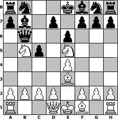 game notation in PGN-format [Event "Olympische Sommerspiele 2016"] [Site "www.myChess.de"] [Date "2016.08.05"] [Round "1"] [White "Robur"] [Black "Hobbykegler"] [ECO "A43"] [WhitemyELO "1842"] [BlackmyELO "1003"] [Result "0-1"] [TimeControl "10/2592000"] [WhiteDays "00"] [BlackDays "24"] [MyChessNo "104430"] 1. d4 c5 2. Nc3 b6 3. dxc5 bxc5 4. e4 Bb7 5. Be3 Qc7 6. Nf3 e6 7. Nb5 Qc6 8. Ne5 Qb6 0-1 position notation in FEN-format rn2kbnr/pb1p1ppp/1q2p3/1Np1N3/4P3/4B3/PPPP1PPP/R2QKB1R - KQkq - 4 9 Captured white pieces: Captured black pieces: Click on a captured piece in order to display the desired move!