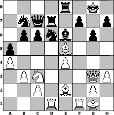 game notation in PGN-format [Event "Gedenkturnier f"] [Site "www.myChess.de"] [Date "2016.02.01"] [Round "1"] [White "Erich"] [Black "Grubengeist"] [ECO "B07"] [WhitemyELO "2104"] [BlackmyELO "1953"] [Result "1-0"] [TimeControl "10/2592000"] [WhiteDays "90"] [BlackDays "86"] [MyChessNo "102351"] 1. e4 d6 2. d4 Nf6 3. Nc3 g6 4. Be2 Bg7 5. Nf3 O-O 6. O-O c6 7. h3 Nbd7 8. a4 a5 9. Be3 e5 10. dxe5 dxe5 11. Qd6 Ne8 12. Qa3 Bf6 13. Rad1 Be7 14. Qa2 Qc7 15. Ng5 Nd6 16. f4 exf4 17. Bxf4 Nc5 18. Qa3 b6 19. Nb1 Be6 20. Qg3 Rad8 21. Nc3 Rd7 22. b3 Rfd8 23. Qh4 Bxg5 24. Qxg5 Re8 25. Qg3 Ncb7 26. Be5 1-0 position notation in FEN-format 4r1k1/1nqr1p1p/1ppnb1p1/p3B3/P3P3/1PN3QP/2P1B1P1/3R1RK1 - - - 4 26 Captured white pieces: Captured black pieces: Click on a captured piece in order to display the desired move!