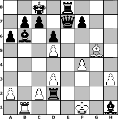 game notation in PGN-format [Event "Energiekrise"] [Site "www.myChess.de"] [Date "2022.10.29"] [Round "1"] [White "Andreas1954"] [Black "faustballer"] [ECO "C20"] [WhitemyELO "1333"] [BlackmyELO "1560"] [Result "0-1"] [TimeControl "10/1728000"] [WhiteDays "20"] [BlackDays "20"] [MyChessNo "127766"] 1. e4 e5 2. d3 a6 3. f3 Qh4+ 4. g3 Qd8 5. Bg2 Bc5 6. Ne2 h6 7. Bd2 Nf6 8. b4 Bb6 9. Bc3 d6 10. f4 Ng4 11. Bd2 Nf2 12. Qc1 Nxh1 13. Bxh1 Nc6 14. Nbc3 Nxb4 15. Nd5 Nxd5 16. exd5 Bg4 17. Qd1 Qe7 18. Rb1 exf4 19. gxf4 O-O-O 20. Bc3 Rde8 21. h3 Bxe2 22. Qd2 Bf3+ 23. Kf1 Bxh1 24. Bxg7 Rhg8 25. Bxh6 Rg2 26. Bg5 Rxd2 0-1 position notation in FEN-format 2k1r3/1pp1qp2/pb1p4/3P2B1/5P2/3P3P/P1Pr4/1R3K1b - - - 0 27 Captured white pieces: Captured black pieces: Click on a captured piece in order to display the desired move!