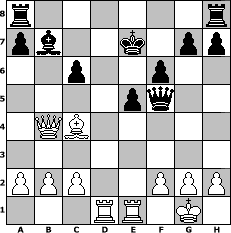 game notation in PGN-format [Event "Maifeiertag 2017"] [Site "www.myChess.de"] [Date "2017.05.01"] [Round "1"] [White "noma"] [Black "beowulf"] [ECO "A35"] [WhitemyELO "1744"] [BlackmyELO "1430"] [Result "1-0"] [TimeControl "10/3456000"] [WhiteDays "39"] [BlackDays "40"] [MyChessNo "108037"] 1. c4 c5 2. Nc3 Nc6 3. Nf3 Nf6 4. d4 cxd4 5. Nxd4 d5 6. cxd5 Nxd5 7. Nxc6 bxc6 8. Bd2 e5 9. e4 Nxc3 10. Bxc3 f6 11. Qa4 Bb7 12. Rd1 Qc7 13. Ba5 Qf7 14. Bc4 Qg6 15. O-O Be7 16. Bb4 Qxe4 17. Bxe7 Kxe7 18. Rfe1 Qf5 19. Qb4+ 1-0 position notation in FEN-format r6r/pb2k1pp/2p2p2/4pq2/1QB5/8/PPP2PPP/3RR1K1 - - - 3 19 Captured white pieces: Captured black pieces: Click on a captured piece in order to display the desired move!
