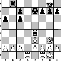 game notation in PGN-format [Event "dazwischen"] [Site "www.myChess.de"] [Date "2010.10.19"] [Round "1"] [White "Arijan"] [Black "Caligula"] [ECO "C46"] [WhitemyELO "1528"] [BlackmyELO "1375"] [Result "0-1"] [TimeControl "10/2592000"] [WhiteDays "00"] [BlackDays "59"] [MyChessNo "69183"] 1. e4 e5 2. Nf3 Nc6 3. Nc3 d6 4. d4 Bg4 5. Bb5 a6 6. Bxc6+ bxc6 7. dxe5 Bxf3 8. Qxf3 dxe5 9. Qg3 Nf6 10. Qxe5+ Be7 11. O-O O-O 12. Qg3 Bd6 13. e5 Bxe5 14. Qxe5 Re8 15. Qg3 Ne4 16. Nxe4 Rxe4 17. Be3 Qe7 18. Rad1 Rb8 0-1 position notation in FEN-format 1r4k1/2p1qppp/p1p5/8/4r3/4B1Q1/PPP1PPPP/3R1RK1 - - - 4 19 Captured white pieces: Captured black pieces: Click on a captured piece in order to display the desired move!