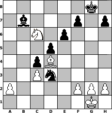 game notation in PGN-format [Event "Denksport mit Sicherheitsabstand"] [Site "www.myChess.de"] [Date "2020.04.19"] [Round "1"] [White "hsvler"] [Black "skuehnel"] [ECO "C11"] [WhitemyELO "1515"] [BlackmyELO "1280"] [Result "1/2-1/2"] [TimeControl "10/2592000"] [WhiteDays "84"] [BlackDays "53"] [MyChessNo "118045"] 1. e4 e6 2. d4 d5 3. Nc3 Nf6 4. e5 Nfd7 5. Nf3 c5 6. Bb5 Nc6 7. Bxc6 bxc6 8. Be3 Ba6 9. Ne2 cxd4 10. Bxd4 c5 11. Be3 Be7 12. O-O O-O 13. Re1 Qc7 14. Bf4 c4 15. c3 g5 16. Nxg5 Bxg5 17. Bxg5 Qxe5 18. Bh6 Rfc8 19. Nd4 Qf6 20. Qd2 Nc5 21. Qg5+ Qxg5 22. Bxg5 Nd3 23. Re2 Rab8 24. Rb1 Rb6 25. Rd2 Rcb8 26. Be3 Rxb2 27. Rdxb2 Rxb2 28. Rxb2 Nxb2 29. Nc6 Nd1 30. Bd4 Nb2 31. Nxa7 Nd3 32. Nc6 Bb7 1/2-1/2 position notation in FEN-format 6k1/1b3p1p/2N1p3/3p4/2pB4/2Pn4/P4PPP/6K1 - - - 3 33 Captured white pieces: Captured black pieces: Click on a captured piece in order to display the desired move!