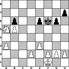 game notation in PGN-format [Event "1. Haithabu-Spiele"] [Site "www.myChess.de"] [Date "2008.08.15"] [Round "1"] [Board "2"] [White "Phantasos"] [Black "Greenhorn"] [ECO "D30"] [WhitemyELO "2121"] [BlackmyELO "1629"] [Result "1-0"] [TimeControl "10/2592000"] [WhiteDays "28"] [BlackDays "30"] [MyChessNo "47181"] 1. d4 d5 2. c4 e6 3. Nf3 c5 4. cxd5 exd5 5. Nc3 Nf6 6. Bf4 Nc6 7. e3 Be7 8. dxc5 Bxc5 9. Bd3 O-O 10. O-O Be6 11. Rc1 Bd6 12. Qa4 Nb4 13. Bxd6 Qxd6 14. Nb5 Bd7 15. Nxd6 Bxa4 16. Bb1 b6 17. b3 Bd7 18. Ne5 Be6 19. a3 Na6 20. b4 g6 21. Nb5 Rfc8 22. Rxc8+ Bxc8 23. Rc1 Ne8 24. Nc6 Kg7 25. Ba2 Nac7 26. Nxc7 Nxc7 27. Ne7 Be6 28. Rxc7 a5 29. b5 Rd8 30. Kf1 Kf6 31. Nc6 Rd7 32. Rxd7 Bxd7 33. Bxd5 Be6 34. Bxe6 fxe6 35. Nxa5 1-0 position notation in FEN-format 8/7p/1p2pkp1/NP6/8/P3P3/3P1PPP/5K2 - - - 0 35 Captured white pieces: Captured black pieces: Click on a captured piece in order to display the desired move!