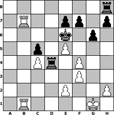 game notation in PGN-format [Event "Die Weinlese"] [Site "www.myChess.de"] [Date "2016.09.01"] [Round "1"] [White "jeremyt"] [Black "Helmut48"] [ECO "B23"] [WhitemyELO "2067"] [BlackmyELO "2022"] [Result "1/2-1/2"] [TimeControl "10/1728000"] [WhiteDays "28"] [BlackDays "80"] [MyChessNo "104699"] 1. e4 c5 2. Nc3 d6 3. f4 g6 4. Nf3 Bg7 5. Bb5+ Bd7 6. Bc4 Nc6 7. O-O Na5 8. d3 Nxc4 9. dxc4 Bxc3 10. bxc3 Nf6 11. e5 Ne4 12. Re1 Bc6 13. Qd3 d5 14. cxd5 Qxd5 15. c4 Qxd3 16. cxd3 Nc3 17. Bd2 Na4 18. Rab1 Bxf3 19. gxf3 O-O-O 20. Rb3 Nb6 21. Be3 Nd7 22. a4 Kc7 23. a5 b6 24. d4 cxd4 25. Bxd4 Nc5 26. axb6+ axb6 27. Bxc5 bxc5 28. Rb5 Rd4 29. Reb1 Kd7 30. Rb7+ Ke6 1/2-1/2 position notation in FEN-format 7r/1R2pp1p/4k1p1/2p1P3/2Pr1P2/5P2/4P2P/1R4K1 - - - 6 31 Captured white pieces: Captured black pieces: Click on a captured piece in order to display the desired move!