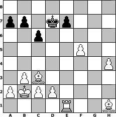 game notation in PGN-format [Event "3. Chess960/3"] [Site "www.myChess.de"] [Date "2009.04.06"] [Round "1"] [White "Heinz@"] [Black "Ostseeboy"] [Variant "Fischerrandom"] [SetUp "1"] [FEN "rqknnrbb/pppppppp/8/8/8/8/PPPPPPPP/RQKNNRBB w KQkq - 0 1"] [WhitemyELO "1500"] [BlackmyELO "1262"] [Result "1-0"] [TimeControl "10/3456000"] [WhiteDays "083"] [BlackDays "120"] [MyChessNo "54671"] 1. f4 g6 2. g4 Ne6 3. f5 gxf5 4. gxf5 Nd4 5. Nc3 f6 6. Bxd4 Nd6 7. Nd3 h5 8. b3 Bh7 9. e4 Nf7 10. Kb2 c6 11. Bg1 Ng5 12. h4 Nf7 13. Qd1 Ne5 14. Nxe5 fxe5 15. Qxh5 Bxf5 16. Rxf5 Rxf5 17. Qxh8+ Kc7 18. Qxb8+ Rxb8 19. exf5 Rh8 20. Bf2 d5 21. Re1 Kd6 22. Bg3 d4 23. Bxe5+ Kd7 24. Bxh8 dxc3+ 25. Bxc3 1-0 position notation in FEN-format 8/pp1kp3/2p5/5P2/7P/1PB5/PKPP4/4R2B - - - 0 25 Captured white pieces: ![]() ![]() ![]() ![]() ![]() ![]() ![]() ![]() ![]() ![]() ![]() ![]() ![]() ![]() ![]() Captured black pieces: ![]() ![]() ![]() ![]() ![]() ![]() ![]() ![]() ![]() ![]() ![]() ![]() ![]() ![]() ![]() Click on a captured piece in order to display the desired move!