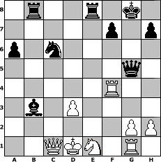 game notation in PGN-format [Event "Rund ums K"] [Site "www.myChess.de"] [Date "2004.09.28"] [Round "2"] [White "Knight"] [Black "Phantasos"] [ECO "C33"] [WhitemyELO "1361"] [BlackmyELO "1906"] [Result "0-1"] [TimeControl "10/2592000"] [WhiteDays "88"] [BlackDays "88"] [MyChessNo "7184"] 1. e4 e5 2. f4 exf4 3. Bc4 Qh4+ 4. Kf1 d5 5. Bxd5 Nf6 6. Nf3 Qh5 7. Nc3 Bb4 8. d3 Bxc3 9. bxc3 Nxd5 10. exd5 O-O 11. c4 c6 12. Bxf4 cxd5 13. cxd5 Qxd5 14. c4 Qf5 15. Qd2 Be6 16. Rb1 Bxc4 17. Ne1 Bxa2 18. Rxb7 Bd5 19. Rb5 a6 20. Rb4 Nc6 21. Ra4 g5 22. Ke2 gxf4 23. Rxf4 Qg5 24. Rg1 Rfe8+ 25. Kd1 Rab8 26. Qc1 Bb3+ 0-1 position notation in FEN-format 1r2r1k1/5p1p/p1n5/6q1/5R2/1b1P4/6PP/2QKN1R1 - - - 7 27 Captured white pieces: ![]() ![]() ![]() ![]() ![]() ![]() ![]() ![]() ![]() ![]() ![]() ![]() ![]() ![]() ![]() Captured black pieces: ![]() ![]() ![]() ![]() ![]() ![]() ![]() ![]() ![]() ![]() ![]() ![]() ![]() ![]() ![]() Click on a captured piece in order to display the desired move!