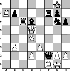game notation in PGN-format [Event "Abtausch Variante"] [Site "www.myChess.de"] [Date "2007.02.05"] [Round "1"] [White "Sherlock6834"] [Black "nordlicht"] [ECO "D35"] [WhitemyELO "1602"] [BlackmyELO "1971"] [Result "0-1"] [TimeControl "10/1728000"] [WhiteDays "58"] [BlackDays "60"] [MyChessNo "32290"] 1. d4 d5 2. c4 e6 3. Nc3 Nf6 4. cxd5 exd5 5. Bg5 Be7 6. e3 O-O 7. Bd3 h6 8. Bh4 c5 9. dxc5 Nbd7 10. Nf3 Nxc5 11. O-O Be6 12. Nd4 Rc8 13. Nxe6 fxe6 14. Bc2 Qb6 15. Rb1 Bd6 16. Bg6 Ncd7 17. Ne2 Ne5 18. Nf4 Rc4 19. Bxf6 Nxg6 20. Nxd5 Qa6 21. b3 Rc6 22. Bc3 exd5 23. Qxd5+ Rf7 24. Bd4 Qxa2 25. Ra1 Qc2 26. Rxa7 Qxf2+ 0-1 position notation in FEN-format 6k1/Rp3rp1/2rb2np/3Q4/3B4/1P2P3/3P1qPP/5RK1 - - - 0 27 Captured white pieces: Captured black pieces: Click on a captured piece in order to display the desired move!