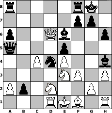 game notation in PGN-format [Event "O, Du fröhlische"] [Site "www.myChess.de"] [Date "2018.11.26"] [Round "1"] [White "Haneken"] [Black "peter58"] [ECO "B20"] [WhitemyELO "1079"] [BlackmyELO "1430"] [Result "0-1"] [TimeControl "10/2592000"] [WhiteDays "90"] [BlackDays "85"] [MyChessNo "113519"] 1. e4 c5 2. d3 Nc6 3. Be3 e5 4. Nd2 Nf6 5. Qe2 d6 6. Bg5 Be7 7. Qf3 Nd4 8. Qd1 h6 9. Bxf6 Bxf6 10. c3 Nc6 11. b4 a6 12. Nc4 O-O 13. Nf3 Be6 14. h3 b5 15. Ne3 cxb4 16. c4 bxc4 17. dxc4 Qa5 18. Qxd6 b3+ 19. Nd2 Nd4 20. f3 b2 21. Rd1 Bh4+ 0-1 position notation in FEN-format r4rk1/5pp1/p2Qb2p/q3p3/2PnP2b/4NP1P/Pp1N2P1/3RKB1R - K - 2 22 Captured white pieces: Captured black pieces: Click on a captured piece in order to display the desired move!
