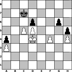 game notation in PGN-format [Event "Rechnerfrei B"] [Site "www.myChess.de"] [Date "2010.02.07"] [Round "1"] [White "Joschi"] [Black "rgHD"] [ECO "B02"] [WhitemyELO "1564"] [BlackmyELO "1611"] [Result "1-0"] [TimeControl "10/1728000"] [WhiteDays "96"] [BlackDays "86"] [MyChessNo "62981"] 1. e4 Nf6 2. e5 Nd5 3. c4 Nb6 4. d4 d6 5. exd6 cxd6 6. Be3 g6 7. Nc3 Bg7 8. Nf3 Bg4 9. Bd3 Nc6 10. d5 Ne5 11. b3 Nxf3+ 12. gxf3 Bxc3+ 13. Bd2 Bxa1 14. Qxa1 f6 15. fxg4 Nd7 16. g5 Ne5 17. Be2 Qc7 18. gxf6 exf6 19. f4 Nd7 20. Bg4 O-O-O 21. Qxf6 Kb8 22. Qg5 Rde8+ 23. Kf2 Nc5 24. Bf3 Qe7 25. Qg4 Ne4+ 26. Bxe4 Qxe4 27. Re1 Qd4+ 28. Be3 Rxe3 29. Rxe3 Re8 30. Qf3 Kc7 31. h4 Kb6 32. Ke2 Rxe3+ 33. Qxe3 Qxe3+ 34. Kxe3 Kc5 35. a3 a5 36. Kd3 b5 37. Kc3 bxc4 38. bxc4 h6 39. Kb3 a4+ 40. Kc3 h5 41. Kd3 Kb6 42. Kd4 Kc7 43. c5 1-0 position notation in FEN-format 8/2k5/3p2p1/2PP3p/p2K1P1P/P7/8/8 - - - 0 43 Captured white pieces: ![]() ![]() ![]() ![]() ![]() ![]() ![]() ![]() ![]() ![]() ![]() ![]() ![]() ![]() ![]() Captured black pieces: ![]() ![]() ![]() ![]() ![]() ![]() ![]() ![]() ![]() ![]() ![]() ![]() ![]() ![]() ![]() Click on a captured piece in order to display the desired move!