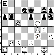 game notation in PGN-format [Event "Die Weinprobe 2017"] [Site "www.myChess.de"] [Date "2017.08.16"] [Round "1"] [White "MSmeetsRE"] [Black "Naunhofer"] [ECO "B23"] [WhitemyELO "1658"] [BlackmyELO "1605"] [Result "1-0"] [TimeControl "10/1728000"] [WhiteDays "28"] [BlackDays "56"] [MyChessNo "109254"] 1. e4 c5 2. Nc3 d6 3. f4 e6 4. Bb5+ Bd7 5. Bxd7+ Qxd7 6. Nf3 g6 7. d4 Bg7 8. dxc5 dxc5 9. Qxd7+ Nxd7 10. Nb5 Rd8 11. Nd6+ Kf8 12. a4 b6 13. a5 Ke7 14. e5 Nh6 15. O-O Nf5 16. Nb5 Ra8 17. g4 Nh6 18. h3 Rhc8 19. Rd1 a6 20. Nd6 Rc6 21. Be3 f6 22. axb6 Rxb6 23. exf6+ Nxf6 24. Bxc5 Nd7 25. Nf5+ 1-0 position notation in FEN-format r7/3nk1bp/pr2p1pn/2B2N2/5PP1/5N1P/1PP1P3/R2R2K1 - - - 2 25 Captured white pieces: Captured black pieces: Click on a captured piece in order to display the desired move!