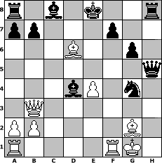 game notation in PGN-format [Event "Ein ganz normales"] [Site "www.myChess.de"] [Date "2007.05.28"] [Round "1"] [White "Juliette2103"] [Black "HPB2005"] [ECO "B24"] [WhitemyELO "1433"] [BlackmyELO "2004"] [Result "0-1"] [TimeControl "10/2592000"] [WhiteDays "37"] [BlackDays "66"] [MyChessNo "35172"] 1. e4 c5 2. Nc3 Nc6 3. g3 d6 4. Bg2 g6 5. Nge2 Bg7 6. O-O Nf6 7. f4 h5 8. d4 cxd4 9. Nxd4 Qb6 10. Nce2 e5 11. fxe5 dxe5 12. c3 exd4 13. cxd4 h4 14. Qb3 hxg3 15. hxg3 Nxd4 16. Nxd4 Qxd4+ 17. Be3 Qe5 18. Bf4 Qh5 19. g4 Nxg4 20. Bd6 Bd4+ 0-1 position notation in FEN-format r1b1k2r/pp3p2/3B2p1/7q/3bP1n1/1Q6/PP4B1/R4RK1 - kq - 2 21 Captured white pieces: Captured black pieces: Click on a captured piece in order to display the desired move!
