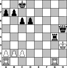 game notation in PGN-format [Event "48/54er"] [Site "www.myChess.de"] [Date "2011.03.14"] [Round "1"] [White "Andreas54"] [Black "Achim48"] [ECO "C41"] [WhitemyELO "1465"] [BlackmyELO "1495"] [Result "0-1"] [TimeControl "10/2592000"] [WhiteDays "110"] [BlackDays "118"] [MyChessNo "72684"] 1. e4 e5 2. Nf3 d6 3. d3 f5 4. Nc3 c6 5. exf5 Bxf5 6. Bg5 Nf6 7. d4 Nbd7 8. Bxf6 Qxf6 9. dxe5 Nxe5 10. Be2 O-O-O 11. h3 h5 12. O-O g5 13. Bd3 g4 14. Nxe5 Qxe5 15. Re1 Qf6 16. Bxf5+ Qxf5 17. hxg4 hxg4 18. Qd4 Bg7 19. Qxg7 Qh5 20. f3 gxf3 21. Kf2 Rhg8 22. Qd4 fxg2 23. Rg1 Rdf8+ 24. Ke1 Rg4 25. Qe3 Re8 26. Ne4 Rexe4 27. Qxe4 Rxe4+ 28. Kf2 Qf5+ 29. Kxg2 Rg4+ 30. Kh3 Qh5# 0-1 position notation in FEN-format 2k5/pp6/2pp4/7q/6r1/7K/PPP5/R5R1 - - - 3 31 Captured white pieces: Captured black pieces: Click on a captured piece in order to display the desired move!