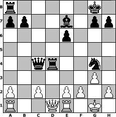 game notation in PGN-format [Event "Human Brain Turnier 2014"] [Site "www.myChess.de"] [Date "2014.06.12"] [Round "1"] [White "muellerh"] [Black "Robert"] [ECO "B52"] [WhitemyELO "1571"] [BlackmyELO "1526"] [Result "0-1"] [TimeControl "10/2592000"] [WhiteDays "74"] [BlackDays "45"] [MyChessNo "94816"] 1. e4 c5 2. Nf3 d6 3. Bb5+ Bd7 4. Nc3 Nc6 5. O-O Nf6 6. Re1 Nd4 7. Nxd4 cxd4 8. Bxd7+ Qxd7 9. d3 dxc3 10. bxc3 e6 11. Bb2 Be7 12. c4 O-O 13. d4 Qc6 14. d5 Qxc4 15. dxe6 fxe6 16. e5 dxe5 17. Bxe5 Ng4 18. Bd4 Rf4 19. g3 Rxd4 0-1 position notation in FEN-format r5k1/pp2b1pp/4p3/8/2qr2n1/6P1/P1P1PP1P/R2QR1K1 - - - 0 20 Captured white pieces: Captured black pieces: Click on a captured piece in order to display the desired move!