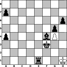 game notation in PGN-format [Event "Hobbyschach"] [Site "www.myChess.de"] [Date "2004.06.26"] [Round "2"] [White "Master1"] [Black "MStr"] [ECO "C44"] [WhitemyELO "1171"] [BlackmyELO "1419"] [Result "0-1"] [TimeControl "10/1728000"] [WhiteDays "139"] [BlackDays "125"] [MyChessNo "5409"] 1. e4 e5 2. Nf3 Nc6 3. c4 d6 4. d4 exd4 5. Nxd4 Bd7 6. Nxc6 Bxc6 7. Bd3 Nf6 8. a4 Nxe4 9. Qe2 Qh4 10. g3 Qe7 11. Nc3 Nxc3 12. bxc3 Qxe2+ 13. Bxe2 Bxh1 14. f3 O-O-O 15. Be3 Re8 16. Kd2 Bxf3 17. Bxf3 b6 18. Bg4+ Kb8 19. Bd7 Re7 20. Bc6 Re6 21. Bd5 Rf6 22. Bg5 Rf2+ 23. Ke3 Rxh2 24. Bxf7 h6 25. Bd8 Kc8 26. Bxc7 Kxc7 27. Ke4 g5 28. Kf5 Be7 29. Re1 Rf2+ 30. Ke6 Kd8 31. Bg6 Rf6+ 32. Kd5 Rxg6 33. Kc6 Rh7 34. g4 Kc8 35. Re2 Bd8 36. Rd2 Rc7+ 37. Kd5 Rc5+ 38. Kd4 Bf6+ 39. Kd3 d5 40. cxd5 Rxd5+ 41. Kc2 Rxd2+ 42. Kxd2 Be5 43. c4 Rd6+ 44. Ke3 Bc3 45. Ke4 Kc7 46. Kf5 Kc6 47. a5 bxa5 48. c5 Kxc5 49. Ke4 Rd5 50. Ke3 Rd4 51. Kf3 Kc4 52. Ke3 Bd2+ 53. Ke2 Rd3 54. Kf2 Kc3 55. Kg2 Bf4 56. Kf2 a4 57. Kg2 Re3 58. Kf2 Kd2 59. Kg2 Ke2 60. Kg1 Kf3 61. Kh1 Re1# 0-1 position notation in FEN-format 8/p7/7p/6p1/p4bP1/5k2/8/4r2K - - - 10 62 Captured white pieces: Captured black pieces: Click on a captured piece in order to display the desired move!