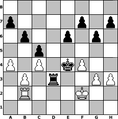 game notation in PGN-format [Event "YOUR LAST BREATH"] [Site "www.myChess.de"] [Date "2019.11.17"] [Round "2"] [White "iamnothere"] [Black "Joschi"] [ECO "A05"] [WhitemyELO "1432"] [BlackmyELO "1531"] [Result "0-1"] [TimeControl "10/3456000"] [WhiteDays "40"] [BlackDays "40"] [MyChessNo "116389"] 1. Nf3 Nf6 2. c4 g6 3. b3 Bg7 4. Bb2 c5 5. g3 O-O 6. Bg2 Nc6 7. O-O e6 8. d3 d5 9. Nbd2 b6 10. Ne5 Nxe5 11. Bxe5 Bb7 12. a4 Nd7 13. Bxg7 Kxg7 14. e4 dxe4 15. Nxe4 Bxe4 16. Bxe4 Rc8 17. f4 Nf6 18. h3 Qd4+ 19. Kh2 Nxe4 20. dxe4 Qxe4 21. Ra2 Rfd8 22. Qe2 Qxe2+ 23. Rxe2 Rd3 24. Rb2 Rcd8 25. Rff2 Rc3 26. Rfc2 Rxc2+ 27. Rxc2 Rd3 28. Rb2 Kf6 29. Kg2 Kf5 30. Kf2 Ke4 0-1 position notation in FEN-format 8/p4p1p/1p2p1p1/2p5/P1P1kP2/1P1r2PP/1R3K2/8 - - - 7 31 Captured white pieces: Captured black pieces: Click on a captured piece in order to display the desired move!