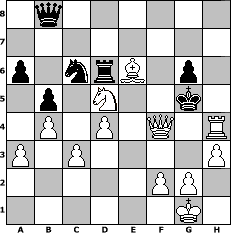 game notation in PGN-format [Event "April 2018"] [Site "www.myChess.de"] [Date "2018.04.11"] [Round "1"] [White "Achimkogge"] [Black "lotchi"] [ECO "A45"] [WhitemyELO "1378"] [BlackmyELO "1085"] [Result "1-0"] [TimeControl "10/1728000"] [WhiteDays "76"] [BlackDays "34"] [MyChessNo "111921"] 1. d4 Nf6 2. c3 Nc6 3. Bf4 d5 4. h3 h6 5. Nf3 e6 6. e3 Ne4 7. Bb5 Bd7 8. O-O a6 9. Bd3 Be7 10. Nbd2 Nxd2 11. Qxd2 Bd6 12. Bxd6 cxd6 13. b4 b5 14. e4 O-O 15. e5 f5 16. exd6 Qb8 17. Qf4 g6 18. Qxh6 Be8 19. Ng5 Qb7 20. Nxe6 Rf6 21. Nc7 Rb8 22. Rfe1 Bf7 23. Re7 Nxe7 24. Qf4 Nc6 25. Re1 Kg7 26. a3 Be8 27. Nxe8+ Kf8 28. Nxf6 Kf7 29. Nxd5 Rd8 30. Bxf5 Qb8 31. Be6+ Kg7 32. Qf6+ Kh6 33. Qf4+ Kg7 34. Qf7+ Kh6 35. Re4 Rxd6 36. Rh4+ Kg5 37. Qf4# 1-0 position notation in FEN-format 1q6/8/p1nrB1p1/1p1N2k1/1P1P1Q1R/P1P4P/5PP1/6K1 - - - 3 37 Captured white pieces: Captured black pieces: Click on a captured piece in order to display the desired move!