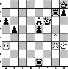 game notation in PGN-format [Event "Zwischendurch mal ein paar eigene Z"] [Site "www.myChess.de"] [Date "2007.11.12"] [Round "1"] [White "Juliette2103"] [Black "bruno"] [ECO "B24"] [WhitemyELO "1504"] [BlackmyELO "1425"] [Result "1-0"] [TimeControl "10/1728000"] [WhiteDays "24"] [BlackDays "91"] [MyChessNo "39727"] 1. e4 c5 2. Nc3 Nc6 3. g3 e6 4. Bg2 Nf6 5. f4 d6 6. Nf3 Be7 7. O-O O-O 8. h3 a6 9. d3 e5 10. Be3 exf4 11. Bxf4 Qb6 12. Rb1 c4+ 13. Kh2 cxd3 14. cxd3 Be6 15. a3 Qc5 16. Qd2 b5 17. d4 Qh5 18. Ng5 Bd7 19. Bf3 Ng4+ 20. Kg2 Bxg5 21. hxg4 Bxf4 22. Qxf4 Qg6 23. Rh1 Nxd4 24. Nd5 Nc6 25. Rbc1 Rac8 26. Rxc6 Qe6 27. Rxd6 Rc2+ 28. Kh3 Qe8 29. Qg5 Kh8 30. e5 Be6 31. Nf4 Rxb2 32. Bc6 Qc8 33. Nxe6 fxe6 34. Rd7 Rg8 35. Qc1 Re2 36. Rhd1 Rxe5 37. Qb2 Re3 38. Rxg7 Rxg7 39. Qf6 Re1 40. Rd8+ Qxd8 41. Qxd8+ Rg8 42. Qf6+ Rg7 43. Bd7 e5 44. Be6 1-0 position notation in FEN-format 7k/6rp/p3BQ2/1p2p3/6P1/P5PK/8/4r3 - - - 1 44 Captured white pieces: Captured black pieces: Click on a captured piece in order to display the desired move!