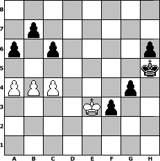 game notation in PGN-format [Event "Dabei ist alles 9"] [Site "www.myChess.de"] [Date "2010.03.22"] [Round "1"] [White "Knight"] [Black "brucybabe"] [ECO "D00"] [WhitemyELO "1135"] [BlackmyELO "1671"] [Result "0-1"] [TimeControl "10/864000"] [WhiteDays "10"] [BlackDays "10"] [MyChessNo "64221"] 1. d4 d5 2. e4 dxe4 3. Nc3 Nf6 4. f3 exf3 5. Qxf3 e6 6. Be3 Be7 7. O-O-O c6 8. Nh3 Nbd7 9. Kb1 Nd5 10. Ne4 Nxe3 11. Qxe3 Nf6 12. Nxf6+ Bxf6 13. Nf4 O-O 14. Bd3 g6 15. h4 Qxd4 16. Qxd4 Bxd4 17. h5 g5 18. Ne2 Be5 19. g4 h6 20. Bc4 Kg7 21. Rdf1 f5 22. gxf5 exf5 23. Rfg1 g4 24. a3 Bd7 25. Bd3 Rad8 26. Ng3 Bxg3 27. Rxg3 f4 28. Rgg1 f3 29. Rh2 Rf4 30. Kc1 Kf6 31. Rd2 Rd4 32. c3 Rd6 33. b4 Be6 34. Rgd1 Bf5 35. Bxf5 Rxd2 36. Rxd2 Rxd2 37. Kxd2 Kxf5 38. Ke3 Kg5 39. c4 Kxh5 40. a4 a6 0-1 position notation in FEN-format 8/1p6/p1p4p/7k/PPP3p1/4Kp2/8/8 - - - 0 41 Captured white pieces: Captured black pieces: Click on a captured piece in order to display the desired move!