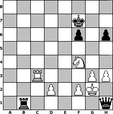 | game notation in PGN-format [Event "5 Jahre Wikinger"] [Site "www.myChess.de"] [Date "2009.12.13"] [Round "1"] [White "neve"] [Black "UPS"] [ECO "D37"] [WhitemyELO "1432"] [BlackmyELO "1682"] [Result "0-1"] [TimeControl "10/864000"] [WhiteDays "10"] [BlackDays "09"] [MyChessNo "61490"] 1. d4 d5 2. c4 e6 3. Nc3 Nf6 4. Nf3 Nc6 5. e3 Be7 6. Be2 a6 7. cxd5 exd5 8. O-O O-O 9. Bd3 Bg4 10. h3 Be6 11. a3 h6 12. Bc2 Na5 13. Qd3 b5 14. e4 c5 15. dxc5 dxe4 16. Nxe4 Qxd3 17. Bxd3 Nb3 18. Rb1 Nxc5 19. Nxc5 Bxc5 20. b4 Bd6 21. Bb2 Rfd8 22. Bxf6 gxf6 23. Be4 Rab8 24. Nh4 Kh8 25. Rbc1 Bc4 26. Rfd1 Bf4 27. Ra1 Be5 28. Rac1 Bb2 29. Rb1 Rxd1+ 30. Rxd1 Bxa3 31. Rd6 Be6 32. Bf5 Bxb4 33. Rxa6 Bc3 34. Bxe6 fxe6 35. Rxe6 b4 36. Rc6 b3 37. Ng6+ Kg7 38. Nf4 b2 39. Rxc3 b1=Q+ 40. Kh2 Qb6 41. Rc2 Qd6 42. g3 Rb1 43. Kg2 Qd1 44. Rc7+ Kg8 45. Rc8+ Kf7 46. Rc3 Qh1# 0-1 position notation in FEN-format 8/5k2/5p1p/8/5N2/2R3PP/3P1PK1/1r5q - - - 9 47 Captured white pieces:                              Captured black pieces:                               Click on a captured piece in order to display the desired move!