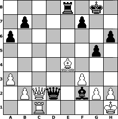 game notation in PGN-format [Event "martinus Open"] [Site "www.myChess.de"] [Date "2010.06.02"] [Round "1"] [White "herieg26928 (adv.)"] [Black "deepsabel"] [ECO "A13"] [WhitemyELO "1833"] [BlackmyELO "2024"] [Result "1/2-1/2"] [TimeControl "10/1728000"] [WhiteDays "51"] [BlackDays "38"] [MyChessNo "66020"] 1. c4 e6 2. Nc3 d5 3. d4 Nf6 4. cxd5 exd5 5. Bg5 Be7 6. e3 c6 7. Bd3 Nbd7 8. Qc2 O-O 9. Nge2 Re8 10. O-O Nf8 11. f3 Be6 12. Rac1 Rc8 13. a3 a6 14. Nf4 h6 15. Bh4 c5 16. dxc5 d4 17. Ne4 g5 18. Nxe6 Nxe6 19. Bf2 Nxe4 20. Bxe4 Bxc5 21. exd4 Nxd4 22. Qd3 Nb3 23. Qxb3 Bxf2+ 24. Kh1 Rxc1 25. Rxc1 Qd2 26. Qc2 1/2-1/2 position notation in FEN-format 4r1k1/1p3p2/p6p/6p1/4B3/P4P2/1PQq1bPP/2R4K - - - 2 26 Captured white pieces: Captured black pieces: Click on a captured piece in order to display the desired move!