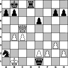 game notation in PGN-format [Event "mal so"] [Site "www.myChess.de"] [Date "2013.12.02"] [Round "1"] [White "Joschi"] [Black "FrankB"] [ECO "C13"] [WhitemyELO "1557"] [BlackmyELO "1579"] [Result "0-1"] [TimeControl "10/1728000"] [WhiteDays "20"] [BlackDays "17"] [MyChessNo "91484"] 1. e4 e6 2. d4 d5 3. Nc3 Nf6 4. Bg5 Be7 5. exd5 Nxd5 6. Bxe7 Qxe7 7. Qd2 Bd7 8. Nf3 c5 9. O-O-O Bc6 10. Bc4 Nxc3 11. Qxc3 Bxf3 12. Qxf3 cxd4 13. Rxd4 Nc6 14. Bb5 Qg5+ 15. Rf4 Qxb5 16. Rxf7 Qg5+ 17. Kb1 O-O-O 18. b3 Qg6 19. Rc1 Rhe8 20. b4 Re7 21. Rxe7 Nxe7 22. Qc3+ Kb8 23. g3 Nd5 24. Qc5 Qf6 25. c4 Nc3+ 26. Kc2 Nxa2 27. Re1 Qc3+ 28. Kb1 Qxe1+ 0-1 position notation in FEN-format 1k1r4/pp4pp/4p3/2Q5/1PP5/6P1/n3PP1P/1K2q3 - - - 0 29 Captured white pieces: ![]() ![]() ![]() ![]() ![]() ![]() ![]() ![]() ![]() ![]() ![]() ![]() ![]() ![]() ![]() Captured black pieces: ![]() ![]() ![]() ![]() ![]() ![]() ![]() ![]() ![]() ![]() ![]() ![]() ![]() ![]() ![]() Click on a captured piece in order to display the desired move!