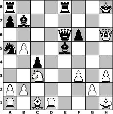 game notation in PGN-format [Event "November-Open (4)"] [Site "www.myChess.de"] [Date "2008.10.26"] [Round "1"] [White "edudoc32"] [Black "martinus"] [ECO "A15"] [WhitemyELO "1851"] [BlackmyELO "1927"] [Result "1/2-1/2"] [TimeControl "10/1728000"] [WhiteDays "20"] [BlackDays "20"] [MyChessNo "49137"] 1. c4 Nf6 2. d4 g6 3. Nc3 c5 4. Nf3 Nc6 5. d5 Na5 6. e4 d6 7. e5 Ng4 8. exd6 exd6 9. Qe2+ Be7 10. h3 Ne5 11. Nxe5 dxe5 12. Qxe5 O-O 13. Bd3 Bd6 14. Qg5 Re8+ 15. Ne2 f6 16. Qh4 b5 17. cxb5 Be5 18. O-O Qxd5 19. Bc2 Bb7 20. f3 c4 21. Nc3 Qd6 22. Kh1 Bg3 23. Qh6 Be5 24. Bxg6 hxg6 25. Qxg6+ Kh8 26. Qh5+ Kg8 27. Qg4+ Kf7 28. Rd1 Qe6 29. Qh5+ Kg8 30. Qg6+ Kh8 31. Qh6+ 1/2-1/2 position notation in FEN-format r3r2k/pb6/4qp1Q/nP2b3/2p5/2N2P1P/PP4P1/R1BR3K - - - 12 31 Captured white pieces: Captured black pieces: Click on a captured piece in order to display the desired move!
