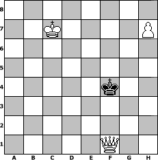 game notation in PGN-format [Event "Sommersonne "] [Site "www.myChess.de"] [Date "2016.05.14"] [Round "1"] [White "Ziegert"] [Black "Joschi"] [ECO "B17"] [WhitemyELO "1433"] [BlackmyELO "1557"] [Result "1-0"] [TimeControl "10/2592000"] [WhiteDays "032"] [BlackDays "209"] [MyChessNo "103661"] 1. e4 c6 2. d4 d5 3. Nc3 dxe4 4. Nxe4 Nd7 5. Bc4 Ngf6 6. Qe2 e6 7. Bf4 Nxe4 8. Qxe4 Nf6 9. Qd3 Bd6 10. Bxd6 Qxd6 11. Nf3 O-O 12. O-O-O b5 13. Bb3 a5 14. c3 a4 15. Bc2 Ba6 16. Ne5 b4 17. Qh3 bxc3 18. Qxc3 Rfc8 19. Kb1 c5 20. Rhe1 cxd4 21. Qxd4 Qc7 22. Rc1 Qb7 23. Ng4 Nxg4 24. Qxg4 Rab8 25. Qd4 Rd8 26. Qe5 Rd5 27. Qc3 Qb5 28. Re4 Rc5 29. Qa3 Rc4 30. Rxc4 Qxc4 31. Bxh7+ Kxh7 32. Rxc4 Bxc4 33. Qxa4 Rc8 34. Qc2+ g6 35. b3 Ba6 36. Qe4 Kg7 37. Qe5+ Kg8 38. Qd4 Bb7 39. Qd7 Be4+ 40. Kb2 Rc2+ 41. Ka3 Bxg2 42. Qd8+ Kg7 43. Qd4+ Kg8 44. b4 Bd5 45. b5 Rxa2+ 46. Kb4 Ra8 47. b6 Rb8 48. Kb5 Rb7 49. Qc5 Kg7 50. Ka6 Kf6 51. Qc8 Ke5 52. Qxb7 Bxb7+ 53. Kxb7 Kf4 54. Kc7 Kf3 55. b7 Kxf2 56. b8=Q e5 57. Qb2+ Kf3 58. Qxe5 f5 59. Qg3+ Ke4 60. Qxg6 Ke5 61. h4 f4 62. h5 f3 63. Qd3 Kf4 64. h6 f2 65. h7 f1=Q 66. Qxf1+ 1-0 position notation in FEN-format 8/2K4P/8/8/5k2/8/8/5Q2 - - - 0 66 Captured white pieces: Captured black pieces: Click on a captured piece in order to display the desired move!