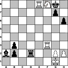 game notation in PGN-format [Event "Reihe: sch"] [Site "www.myChess.de"] [Date "2008.03.21"] [Round "1"] [White "Baehr008"] [Black "HenrySchinasky"] [ECO "D10"] [WhitemyELO "2095"] [BlackmyELO "1998"] [Result "1/2-1/2"] [TimeControl "10/1728000"] [WhiteDays "74"] [BlackDays "93"] [MyChessNo "43647"] 1. d4 d5 2. c4 c6 3. Nc3 Nf6 4. Nf3 e6 5. e3 Nbd7 6. Bd3 dxc4 7. Bxc4 b5 8. Bd3 Bb7 9. e4 b4 10. Na4 c5 11. e5 Nd5 12. Nxc5 Nxc5 13. dxc5 Bxc5 14. Qa4+ Ke7 15. Bg5+ f6 16. Bc1 Nf4 17. Bxf4 Qxd3 18. Be3 Rhc8 19. Rd1 Qe4 20. Qd7+ Kf8 21. O-O Bxe3 22. Qd6+ Kg8 23. Qxe6+ Kh8 24. Rde1 Qd5 25. Qxd5 Bxd5 26. fxe3 fxe5 27. Nxe5 Bxa2 28. Ra1 b3 29. Nd3 Rc2 30. e4 Kg8 31. e5 a5 32. Rae1 Rd2 33. Rf3 a4 34. e6 Re8 35. e7 h6 36. Nf4 a3 37. Ng6 Kh7 38. Nf8+ Kh8 39. Nd7 Rxe7 40. Rxe7 axb2 41. Re8+ Kh7 42. Nf8+ Kg8 1/2-1/2 position notation in FEN-format 4RNk1/6p1/7p/8/8/1p3R2/bp1r2PP/6K1 - - - 4 43 Captured white pieces: Captured black pieces: Click on a captured piece in order to display the desired move!