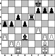 game notation in PGN-format [Event "Rechnerfrei B"] [Site "www.myChess.de"] [Date "2010.02.07"] [Round "1"] [White "rgHD"] [Black "nogumo"] [ECO "A15"] [WhitemyELO "1611"] [BlackmyELO "1611"] [Result "0-1"] [TimeControl "10/1728000"] [WhiteDays "33"] [BlackDays "53"] [MyChessNo "63008"] 1. c4 Nf6 2. g3 e6 3. Bg2 c6 4. Nf3 d5 5. cxd5 exd5 6. O-O Bd6 7. Nc3 Bf5 8. d3 O-O 9. Bg5 Nbd7 10. Nd4 Bg6 11. Rb1 Qb6 12. Be3 Rae8 13. Ne6 Qa6 14. Nxf8 Nxf8 15. a3 Ne6 16. Qa4 Qxa4 17. Nxa4 b5 18. Nc3 a5 19. Na2 Ng4 20. Bb6 Bc5 21. Bxc5 Nxc5 22. Bf3 Ne5 23. Bg2 Nb3 24. Nc1 Nd2 25. Nb3 Nxb3 26. h3 Nd2 27. Rbc1 Nxf1 28. Kxf1 Kf8 29. f4 Nxd3 30. exd3 Bxd3+ 31. Kg1 Re6 0-1 position notation in FEN-format 5k2/5ppp/2p1r3/pp1p4/5P2/P2b2PP/1PP3B1/2R3K1 - - - 2 32 Captured white pieces: ![]() ![]() ![]() ![]() ![]() ![]() ![]() ![]() ![]() ![]() ![]() ![]() ![]() ![]() ![]() Captured black pieces: ![]() ![]() ![]() ![]() ![]() ![]() ![]() ![]() ![]() ![]() ![]() ![]() ![]() ![]() ![]() Click on a captured piece in order to display the desired move!