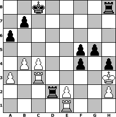game notation in PGN-format [Event "Amateur´s Mind"] [Site "www.myChess.de"] [Date "2025.03.20"] [Round "1"] [White "kalle"] [Black "zoli"] [ECO "C24"] [WhitemyELO "1645"] [BlackmyELO "2045"] [Result "0-1"] [TimeControl "10/2592000"] [WhiteDays "29"] [BlackDays "25"] [MyChessNo "133069"] 1. e4 e5 2. Bc4 Nf6 3. Nc3 c6 4. f4 exf4 5. Nf3 d5 6. exd5 cxd5 7. Bb3 Nc6 8. O-O Bb4 9. Re1+ Be6 10. a3 Bd6 11. Nxd5 Nxd5 12. Bxd5 Bc5+ 13. d4 Nxd4 14. Nxd4 Qxd5 15. c3 g5 16. Kh1 O-O-O 17. Bd2 h5 18. Rc1 h4 19. Qf3 a6 20. Qxd5 Bxd5 21. b4 Ba7 22. c4 Bxg2+ 23. Kxg2 Bxd4 24. Bc3 Bxc3 25. Rxc3 Rd2+ 26. Kh3 f5 0-1 position notation in FEN-format 2k4r/1p6/p7/5pp1/1PP2p1p/P1R4K/3rP2P/4R3 - - - 0 27 Captured white pieces: Captured black pieces: Click on a captured piece in order to display the desired move!